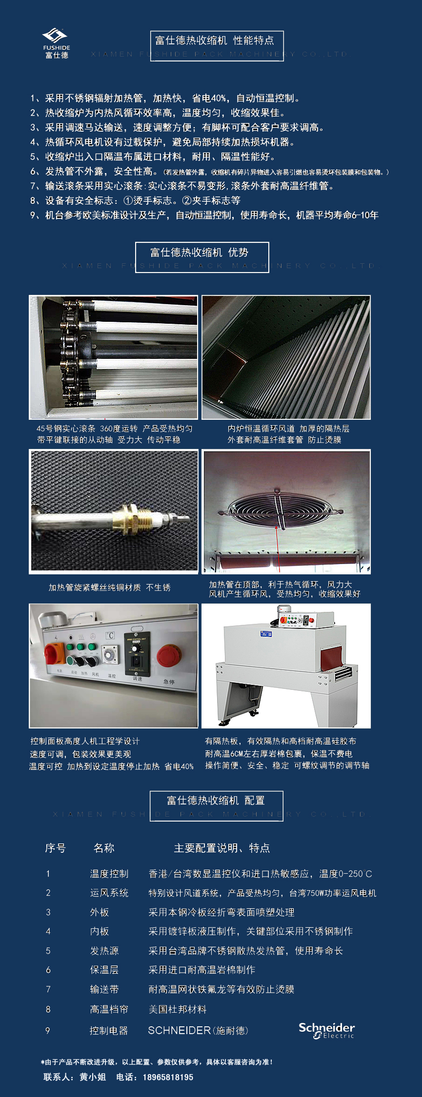 本款產品適用于:茶葉、五金、電子、化妝品、文具、陶瓷工藝品、印刷品、保健品、飲料、橡膠制品、膠帶、衛(wèi)浴、日化等行業(yè)批量化生產。適用于POF/PVC/PE/PP/PET等各種收縮膜。