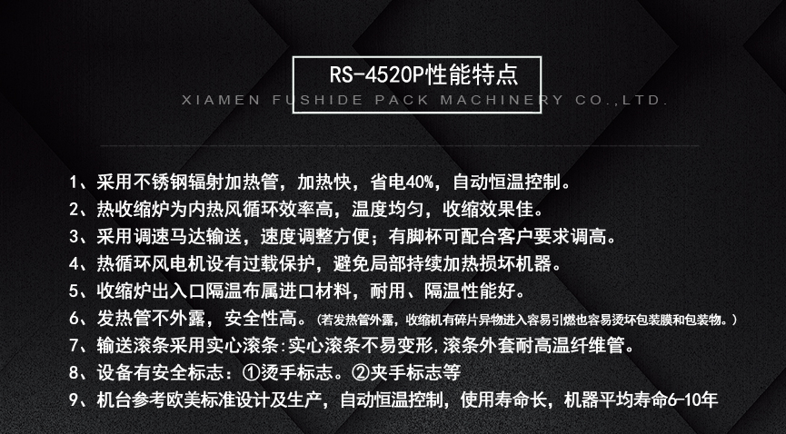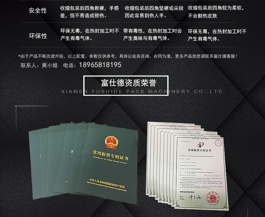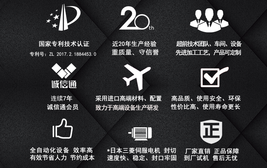 擁有多項專利技術(shù) 數(shù)千平標(biāo)準(zhǔn)廠房 批量標(biāo)準(zhǔn)化生產(chǎn) 可定制開發(fā)和自動化流水線搭建! 超前技術(shù)團(tuán)隊 先進(jìn)加工工藝 高精度加工設(shè)備 近20年專業(yè)研發(fā)經(jīng)驗不斷改進(jìn)、創(chuàng)新、突破!我們定位于專注做中高端全自動熱收縮膜包裝機,請不要拿我們和不同定位的廠家對比!我們是源頭工廠…