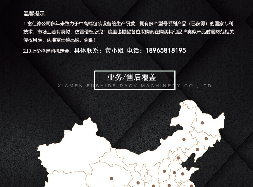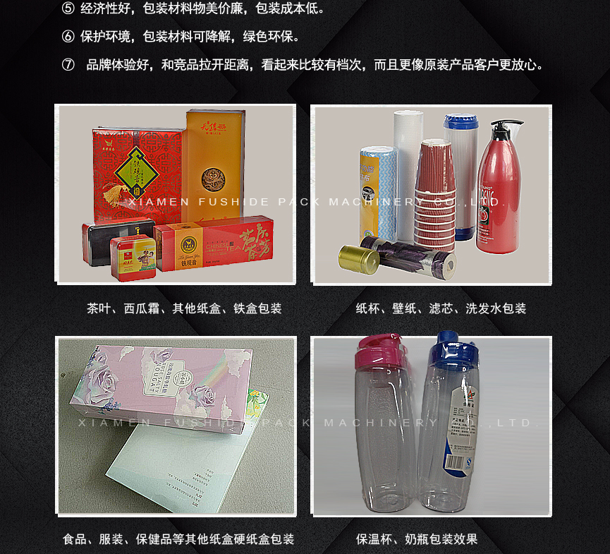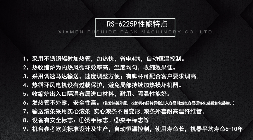 擁有多項專利技術(shù) 數(shù)千平標(biāo)準廠房 批量標(biāo)準化生產(chǎn) 可定制開發(fā)和自動化流水線搭建! 超前技術(shù)團隊 先進加工工藝 高精度加工設(shè)備 近20年專業(yè)研發(fā)經(jīng)驗不斷改進、創(chuàng)新、突破!我們定位于專注做中高端全自動熱收縮膜包裝機,請不要拿我們和不同定位的廠家對比!我們是源頭工廠…